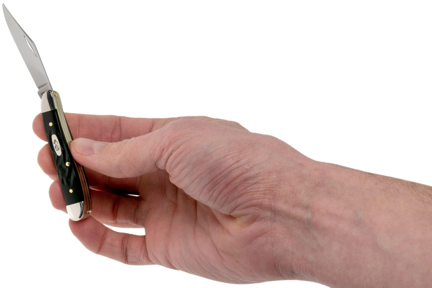 Le Case Peanut est un couteau de poche traditionnel de forme classique Peanut. Ce type de couteau tire son nom de la forme du manche : avec un peu d’imagination, il ressemble à une cacahuète. Ce couteau de poche est relativement petit et est doté de deux lames : une lame principale clippoint et une lame secondaire pen knife. Les deux lames ont une pointe différente. On les utilise séparément pour des tâches bien différentes ou on conserve la lame secondaire Elles sont maintenues en position ouvertes avec un système de slipjoint.