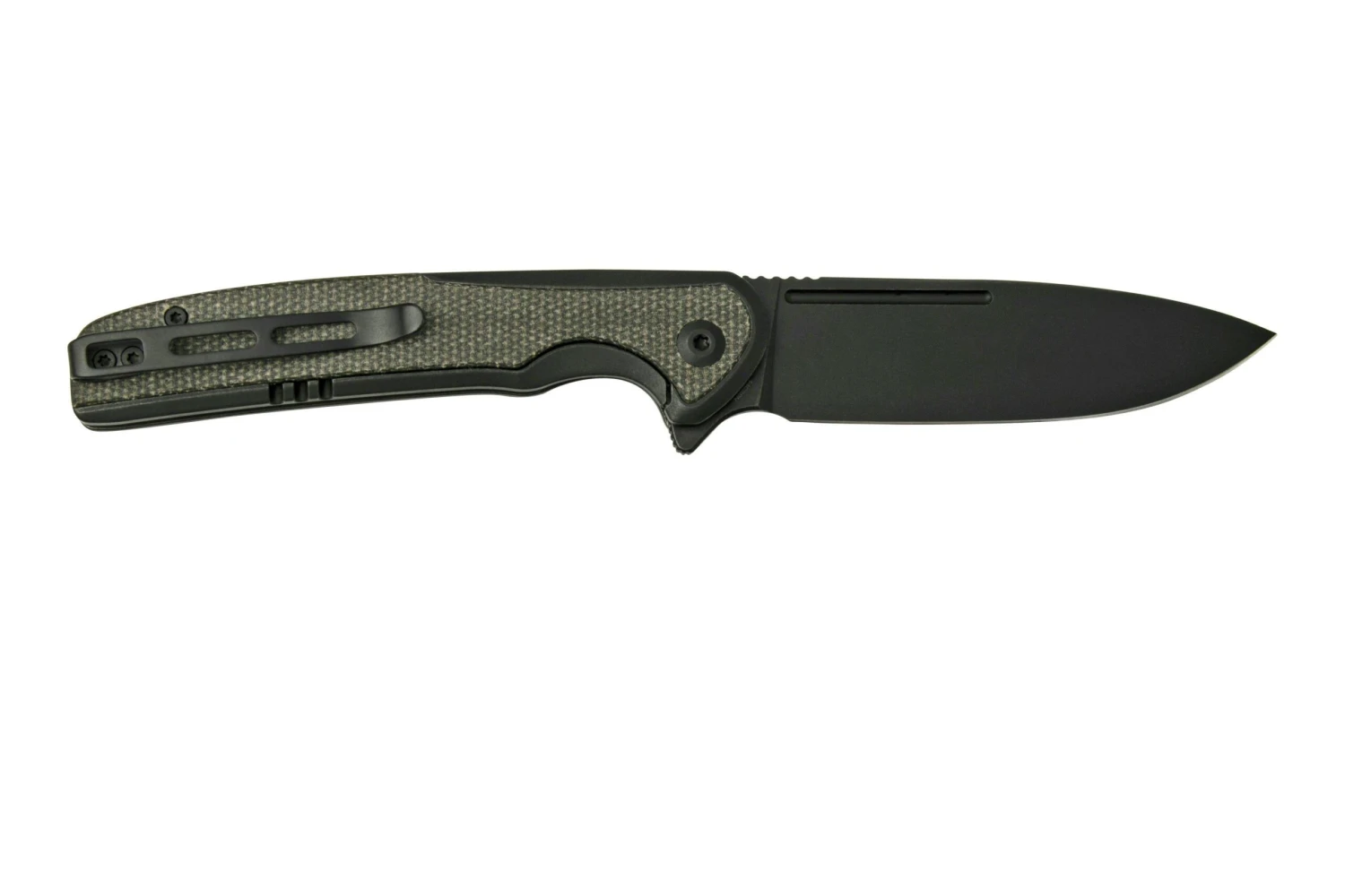 Le Civivi Voltaic C20060-2 est un couteau de poche magnifique pour l’everyday carry. On ouvre la lame avec le flipper. Les roulements à billes en céramique rendent l’action extrêmement souple. Une fois ouverte, la lame est bloquée par un framelock. La lame mesure quasiment 9 cm de long, et ce couteau reste assez long, même replié. Mais il reste tout de même discret une fois glissé dans la poche, et on le sent à peine.