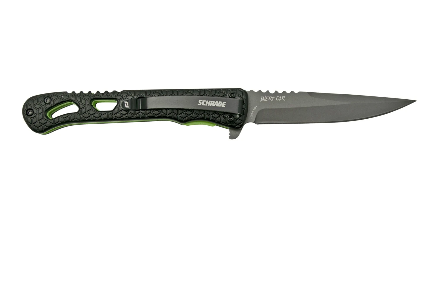 Le Schrade Inert CLR 1159303 est un joli couteau de poche tout fin. Mais ne le sous-estimez pas ! Cette lame est en acier AUS10. Un acier japonais robuste et facile à aiguiser. Il conserve également très bien son tranchant. Le manche est doté de plaquettes de manche en aluminium. Une conception qui donne un couteau assez léger. La lame s’ouvre grâce au flipper, et un solide linerlock la maintient en position ouverte.