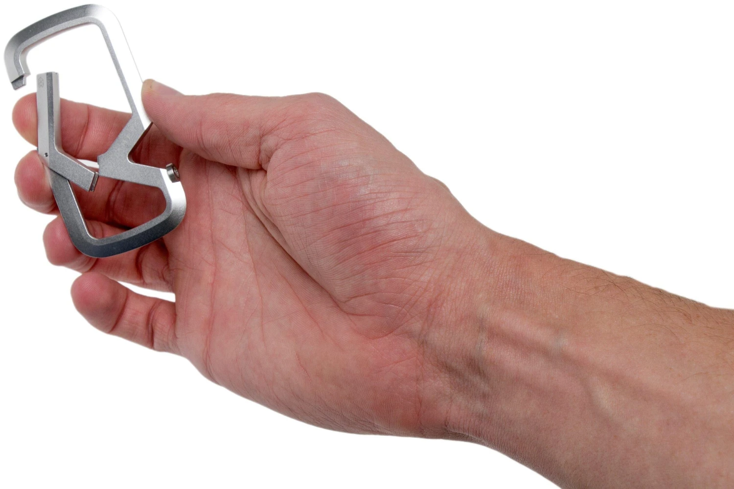 Le mousqueton The James Brand Mehlville est un mousqueton robuste en aluminium sur lequel accrocher vos clés ou outils. Vous pouvez facilement ouvrir le Mehlville en poussant le mousqueton à l’intérieur. Une fois les clés dans le mousqueton, vous pouvez pousser le mousqueton une seconde fois. De cette façon, les clés tombent dans la deuxième partie du mousqueton où elles sont en sécurité et ne peuvent simplement pas tomber. Le mousqueton est équipé d’un décapsuleur très innovant avec un disque en acier interchangeable. Ce disque en acier est fixé avec une vis dans le mousqueton et peut être remplacé si nécessaire. Comme ce disque est fait d’acier inoxydable durci, il s’usera moins rapidement que l’aluminium. Très pratique pour ouvrir un bon verre en fin de journée !